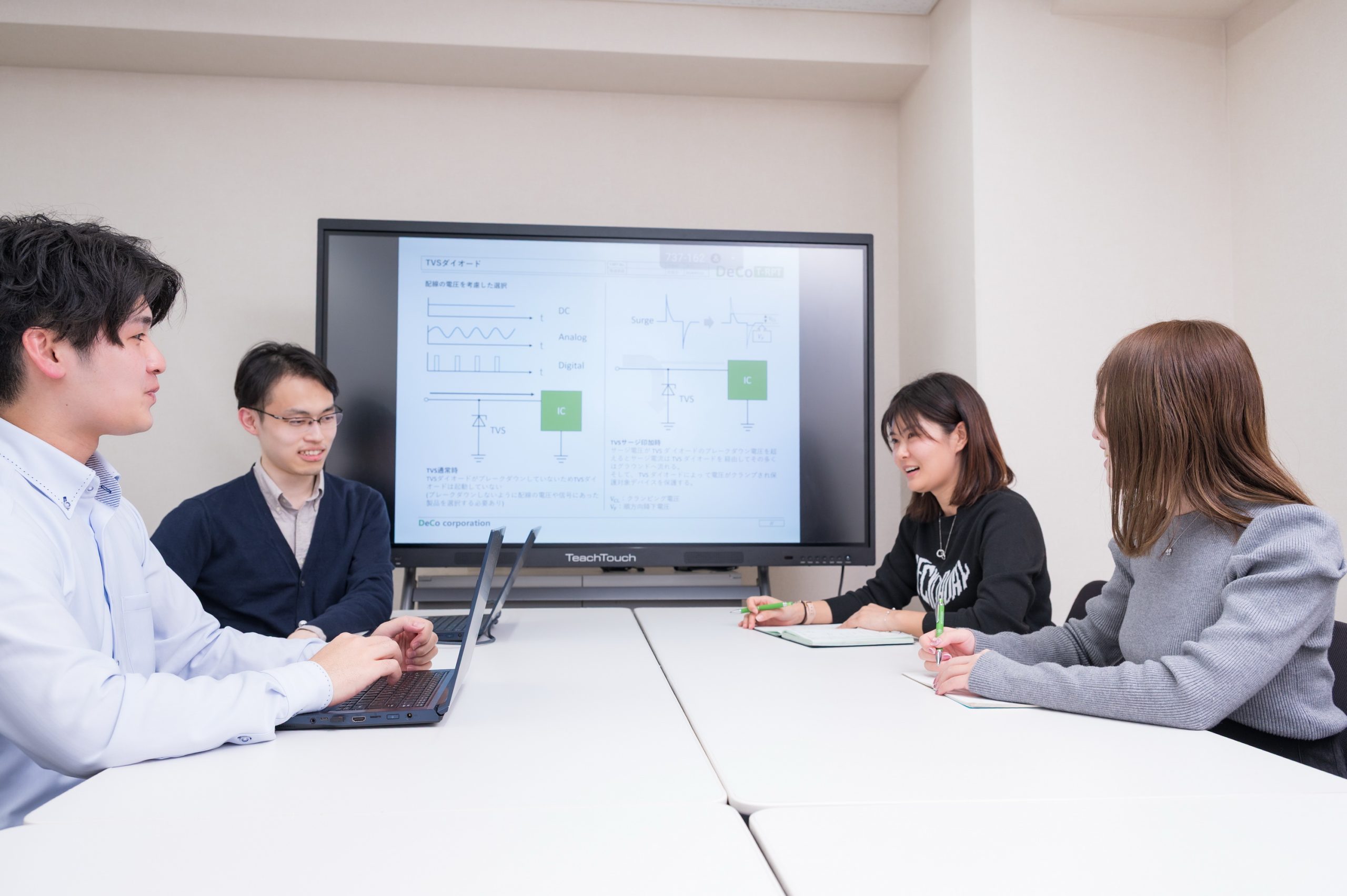 DeCoでは技術を学べる体制を整えており、電源や光学設計分野の知識があまりない方でも、学ぶ姿勢さえあれば活躍いただける環境となっています。